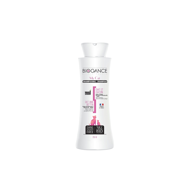 My Cat šampon je formuliran od ekstrakta breze i arganovog ulja zbog njihovih hranjivih, obnavljajućih i preventivnih svojstava. Bogat esencijalnim masnim kiselinama, omega 6 i vitaminima A i E, My Cat pomaže njegovati dlaku i hidratizira kožu dok štiti dlaku od vanjskih učinaka (onečišćenje, sunce, duhan…)