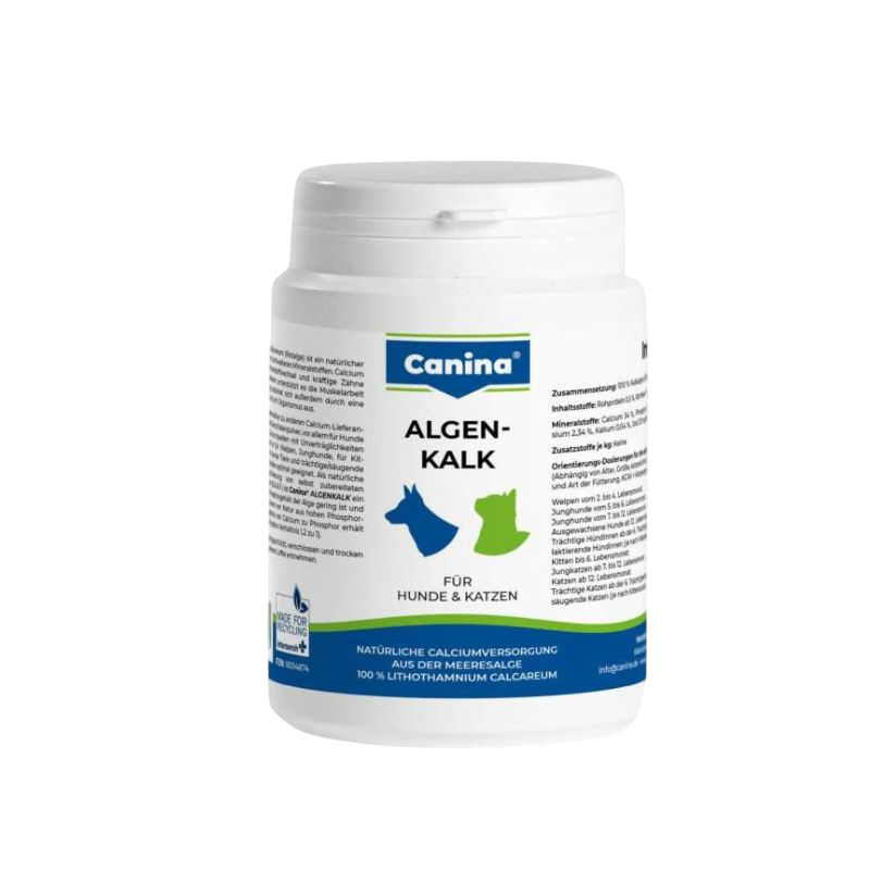 Canina® ALGENKALK je alternativa drugim dobavljačima kalcija kao što su meso i koštano brašno ili prah od ljuske jajeta, posebno za pse i mačke koji netolerancijom reagiraju na životinjske izvore kalcija. Canina® ALGENKALK jednako je idealan za štence, mlade pse, mačiće, odrasle životinje i starije životinje te gravidne/dojeće kuje/mačke.
