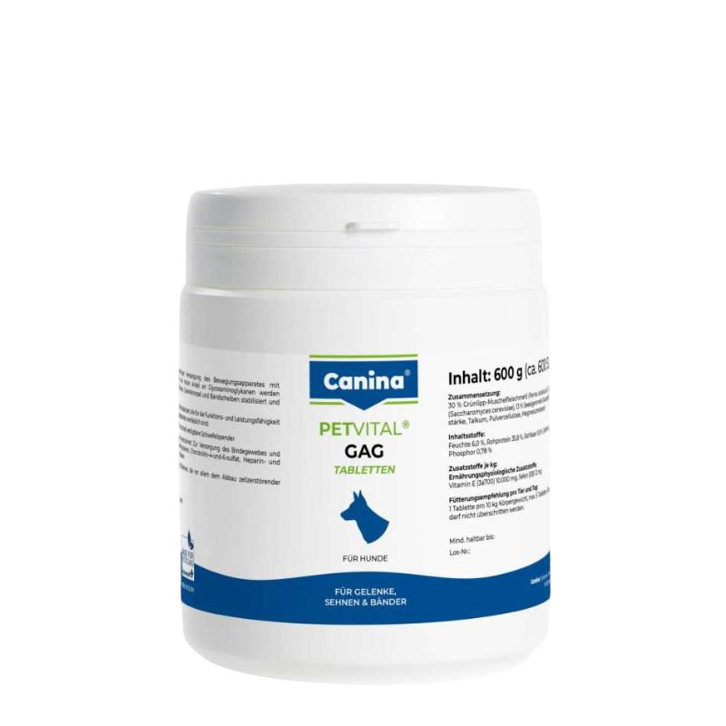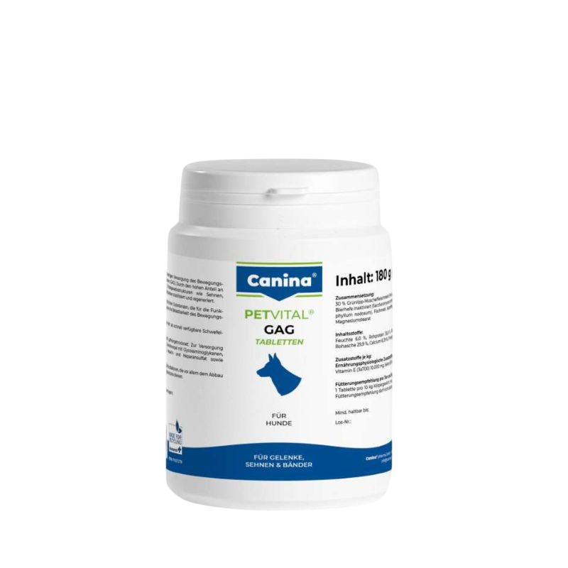 Petvital GAG je dodatak prehrani za pse. Vrhunska opskrba sustava za kretanje sa glikozamin glikanom (GAG). Djelovanjem visokovrijednog GAG-a obnavlja se i stabilizira struktura vezivnog tkiva (tetive, ligamenti, zglobna hrskavica, diskovi). GAG je djelotvoran kompleks prirodnih tvari koji uspješno djeluje na povećanje radne sposobnosti i opterećenja sustava za kretanje.