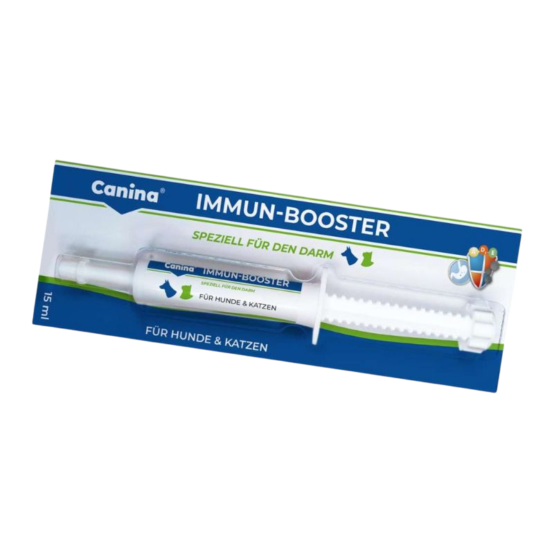 Poboljšavanje prehrane i rekonvalescencija. Canina ® Immun Booster osigurava psima i mačkama lako probavljivu i lako dostupnu energiju, visoke koncentracije vitamina i imunoglobulina iz kolostruma. Kolostrum je prvo mlijeko koje majka proizvodi tijekom i nakon poroda, bogato laktoferinom i lizozimom. Canina ® Immun Booster podržava obrambeni sustav tijela i povećava efikasnost oporavka životinja, posebno tijekom i nakon fizičkog stresa kao što su porod (majka i potomci), trening, sport i rad.