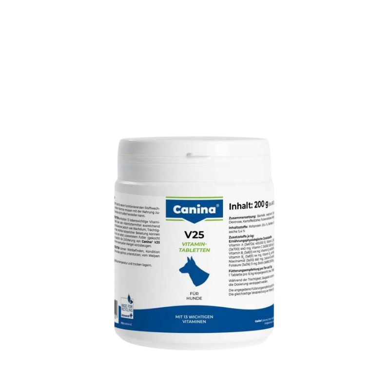 CANINA V25 Vitaminske tablete za psa sa 12 životno važnih vitamina, dodatak prehrani za pse.