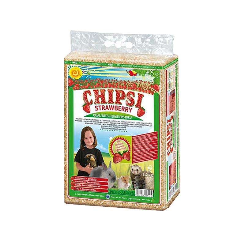 Chipsi drvene strugotine sa mirisom jagode osiguravaju meko i čisto stanište malim glodavcima. Ne stvaraju prašinu, odlikuju se velikim kapacitetom upijanja vlage te odstranjuju neugodan miris. Ove stelje apsolutno su suhe i sterilne.