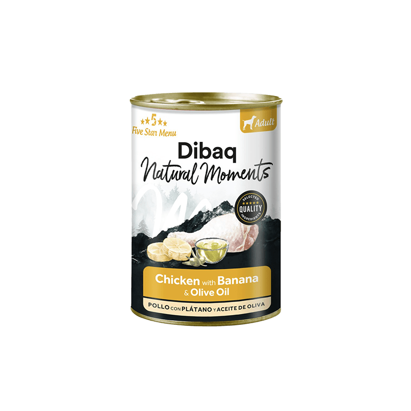 Svježa piletina 40%*, grašak, svježa banana 4%*, minerali, maslinovo ulje 0.1%*. *Prirodni sastojci.
