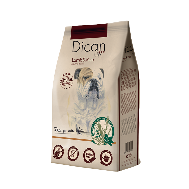 Dehidrirano meso 31% (janjetina 6%), puno zrno kukuruza, ječam, vlakna iz žitarica, pileća mast, riža 4%, repina pulpa, hidrolizirane bjelančevine janjetine 2%, mahune rogača, mineralne tvari, masline 0.1% i prirodni biljni ekstrakti (izvori prirodnog prebiotika: Manioka 0.02% (Cassava filaments), kamilica 0.01% (Chamaemelum nobile), matičnjak 0.01% (Melisa Oficinales), ružmarin 0.01% (Rosmarinus officinalis)).