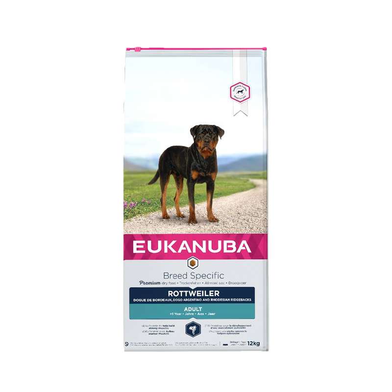 EUKANUBA zna da su psi nastali od mesojeda. Upravo zato su svi EUKANUBA recepti skrojeni prema starosti i veličini psa. Naše hrane sadrže visoko kvalitetne bjelančevine iz životinjskih izvora. One pomažu vašem psu održati zdravu težinu, probavu, kožu i kvalitetu dlake dok istovremeno balansiraju udio energije. Eukanuba pomaže vašem psu izvući najbolje iz sebe. Eukanuba Rottweiler hranu razvili su veterinari, a preporučaju uzgajivači.