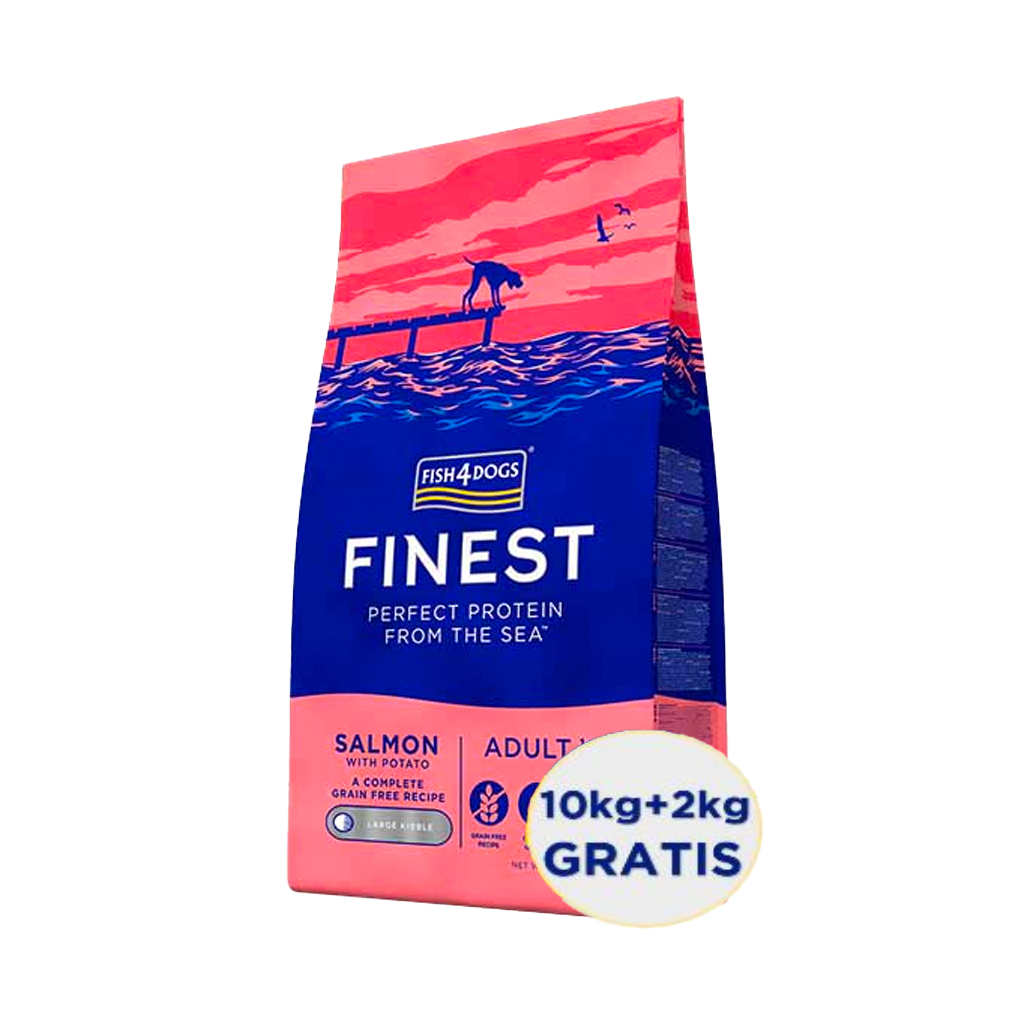 FINEST FISH4DOGS SALMON napravljena je od namirnica najviše kvalitete i pogodna je za odrasle pse svih veličina i pasmina. Ukoliko želite biti sigurni u kvalitetu namirnica koja se nalazi u hrani kojom hranite vašeg psa, Fish4Dogs je odličan izbor. Uvijek svježe namirnice iz kontroliranog uzgoja glavni su sastojak Fish4Dogs hrane. Osim što je riba zdrava za cijeli organizam, dodatno se preporuča psima sa kožnim problemima.