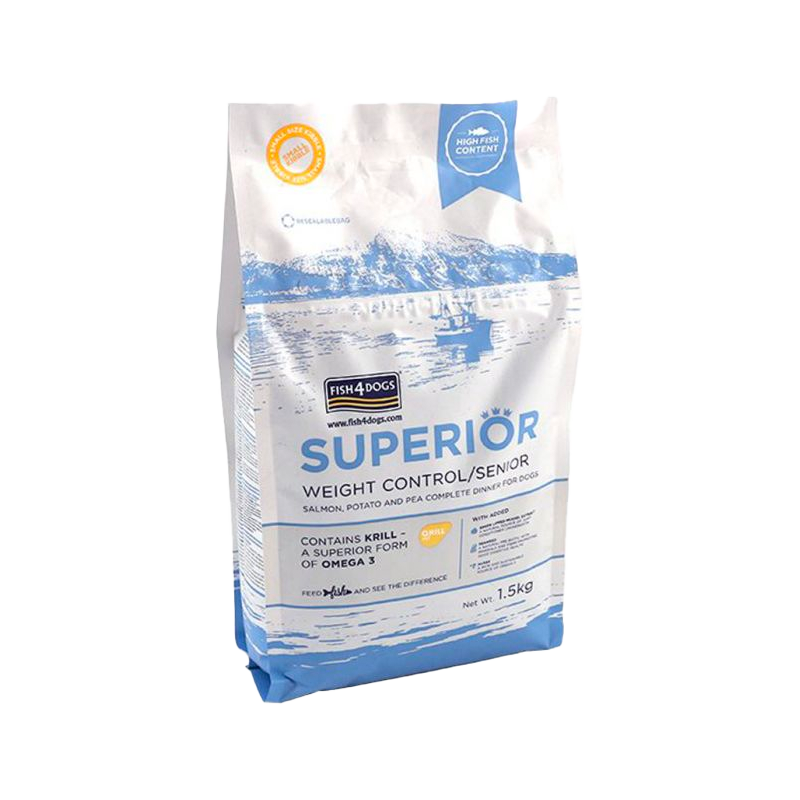 Fish4Dogs Superior Weight Control / Senior napravljena je od namirnica najviše kvalitete te je posebno prilagođena hrana za starije pse koja sadrži niski udio proteina (22%) i niski udio masti (7%) zbog čega je vrlo pogodna za starije pse sporijeg probavnog sustava. Kako je riba lako probavljiva, ova hrana je idealna za svakodnevnu prehranu pasa koji imaju osjetljiv želudac i probavu.