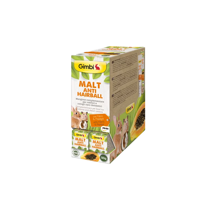 Dodatak prehrani za glodavce i patuljaste kuniće, za lakše izbacivanje progutane dlake. Njena formula osigurava laku probavljivost i efektivno rješava probleme uzrokovane gutanjem dlaka tijekom procesa njege. Sadrži prirodni slad, biljna ulja, papaju i vlakna koja su bitna za crijevnu floru kod glodavaca.