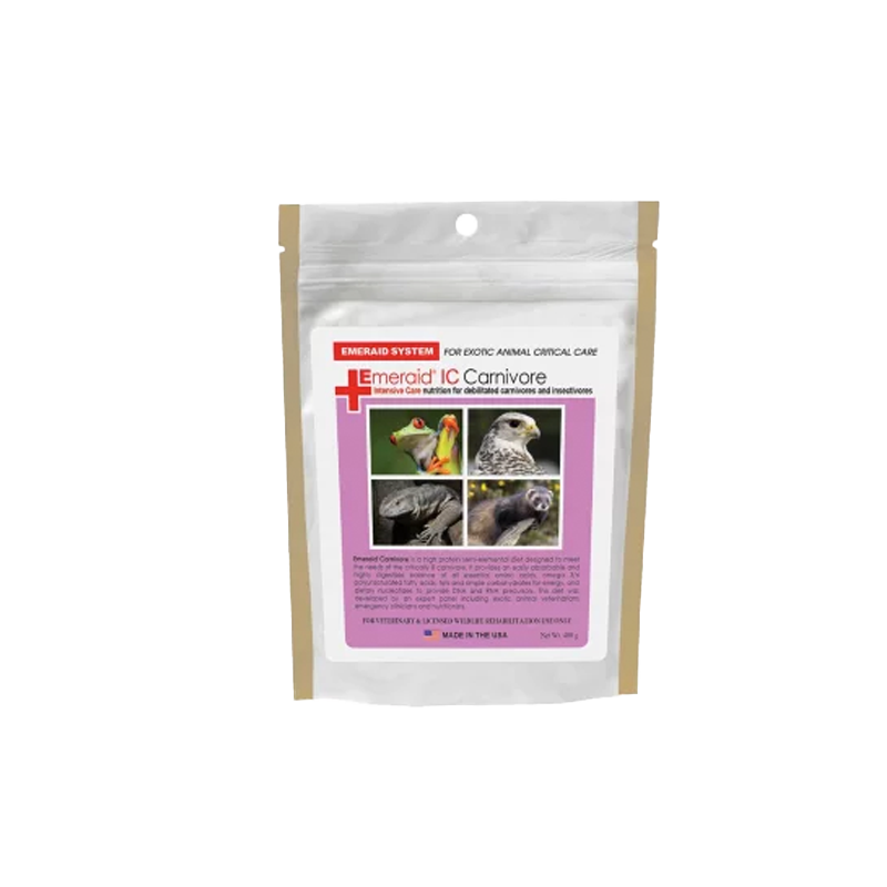 Intenzivna ishrana za oslabljene mesojede životinje. EmerAid Carnivore je polu-elementarna ishrana bogata bjelančevinama dizajnirana za zadovoljavanje potreba kritično bolesnih životinja mesojeda. Hrana pruža jednostavno apsorbirajuću i lako probavljivu ravnotežu bjelančevina, masti i jednostavnih ugljikohidrata za energiju. Ova ishrana je razvijena u suradnji sa stručnim timom kliničara za egzotične životinje i hitne slučajeve te nutricionistima.