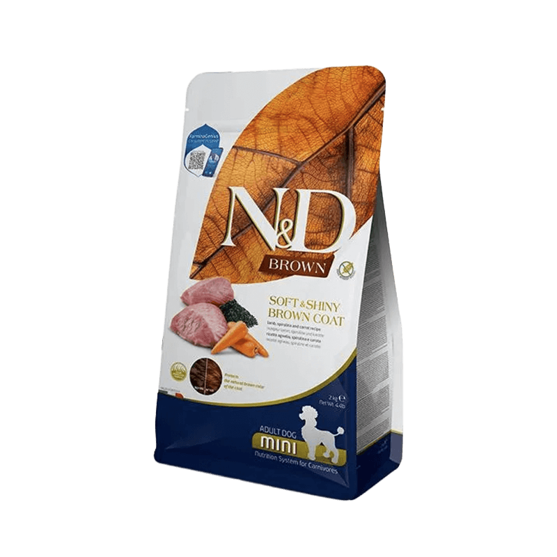 N&D Brown je cjelovita hrana formulirana za odrasle pse smeđe boje dlake poput čivava, šnaucera, francuskih buldoga, pinčeva i pudli, kao i za sve pse malih pasmina sa smeđom ili palež dlakom.