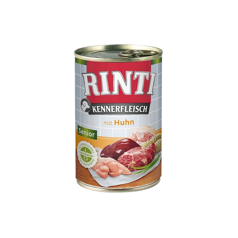 RINTI KENNERFLEISCH SENIOR Piletina. Potpuna, vlažna hrana za kućne ljubimce, za STARIJE pse. Ne sadrži žitarice, ni ugljikohidrate. 66% mesa i iznutrica, bogata prirodnim komadima mesa – što obilježava pravi Rinti Kennerfleisch obrok. Sadrži omega-3 m. kis. iz lanenog ulja za jačanje imuniteta i zaštitu stanica, te repina vlakna bogata balastnim tvarima za regulaciju probave.